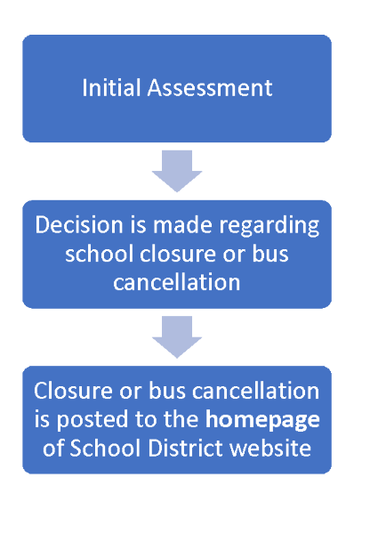 Once area assessments are complete, the Facilities and Transportation staff make a recommendation to the Superintendent. Whenever possible, this information is communicated by 6:15 AM. Please note: Only cancellations, closures, or delayed openings will be announced. If schools are open, no announcement will be made unless there are extreme circumstances.